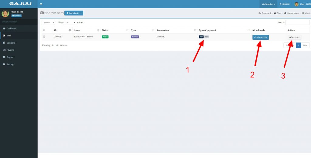 If you have a website and want to earn money by placing advertising banners on the website, it is very easy to do with Gajuu.com!
